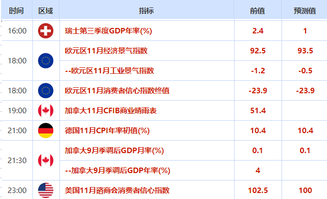 对风险敏感的澳元是周一表现最差的主要货币,澳元兑美元周一大跌1.42%至0.6651。澳元走势与亚洲大国经济增长密切相关。而且数据显示,由于物价上涨和利率上升似乎最终对支出产生了影响,澳洲10月零售销售遭遇2022年以来的首次下跌,这也使该货币受到了影响。