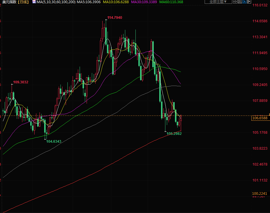 美元指数从9月28日触及的20年高点114.78跌至106.65,原因是市场预期其涨势可能已经过头,而且美联储希望放缓加息步伐。