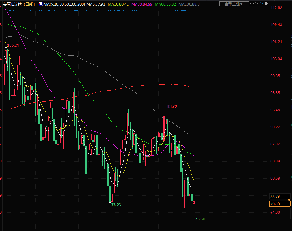商品收盘情况:美国原油收涨1.3%,报77.24美元,稍早触及2021年12月以来最低点73.60美元。布伦特原油一度上涨,但结算价下跌0.5%,报每桶83.19美元,盘中早些时候曾下滑逾3%至80.61美元,为2022年1月4日以来最低,这两大指标合约已经连续三周下跌。美国期金结算价报每盎司1740.3美元,下跌0.8%。