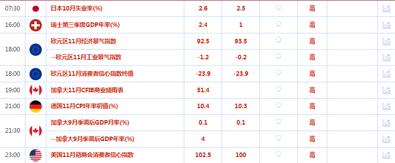 美联储主席鲍威尔将于周三在布鲁金斯学会的一个活动上发表讲话,讨论美国经济和劳动力市场的前景。?另外,美国11月非农就业数据将于周五公布,这可能会改变对美联储12月政策动向的预期。交易员们目前预计会上将加息50个基点。?