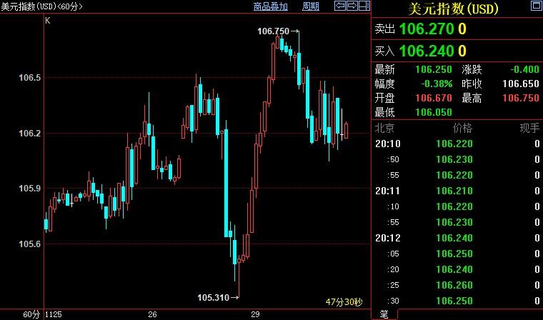 北京时间20:11,现货黄金上涨0.82%至1755.55美元/盎司;COMEX期金主力合约上涨0.82%至1754.5美元/盎司;美元指数下跌0.40%至106.243。
