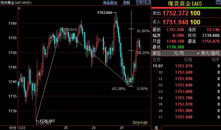 现货黄金上看1766美元
