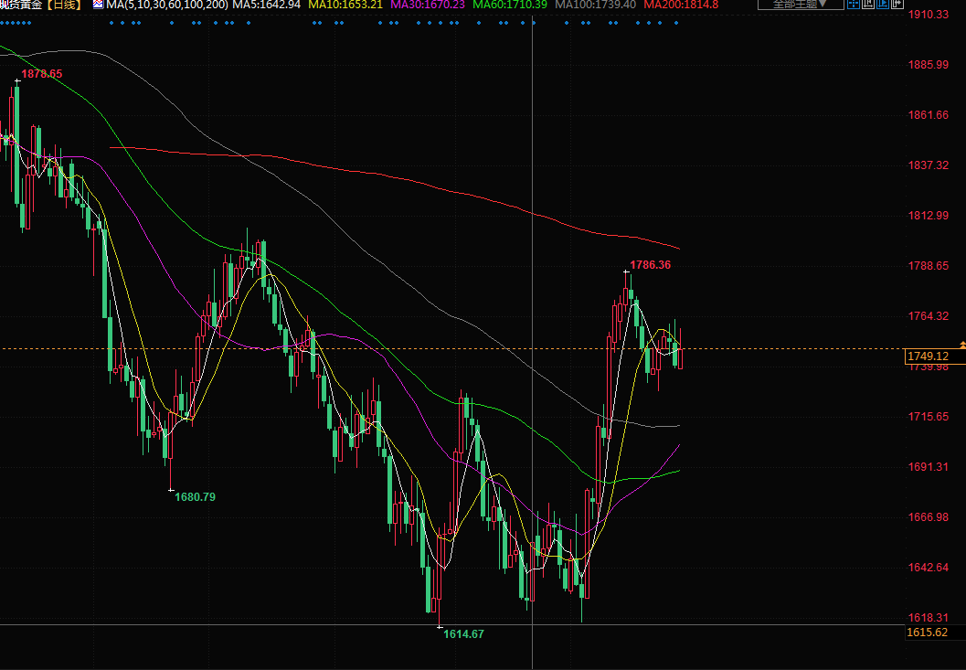 金价周二上涨1%,受助于美元回落和对美联储未来加息幅度降低的希望。现货金上涨0.6%,至每盎司1751.21美元。