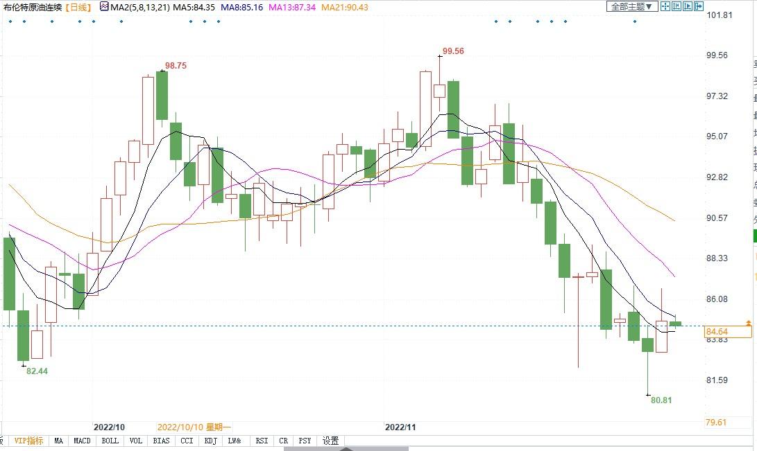 北京时间11月30日14:37,布伦特原油主力合约价格报84.90美元/桶。