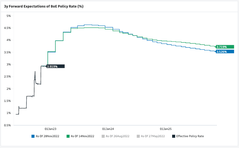 英国央行未来三年利率预期如下: