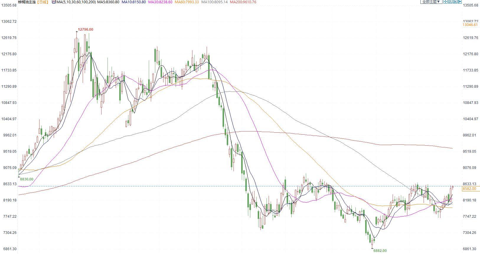 棕榈油2301合约日内涨2.02%,收盘8582元/吨;广州市场棕榈油8670元/吨。