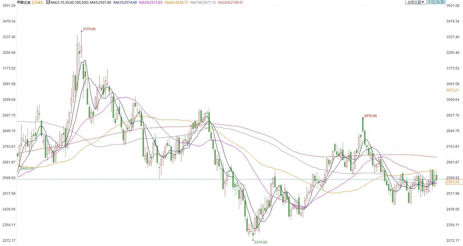 期货市场,甲醇2301合约小幅收跌,收盘价2593。现货端,港口库存较低,目前现货强势于期货。