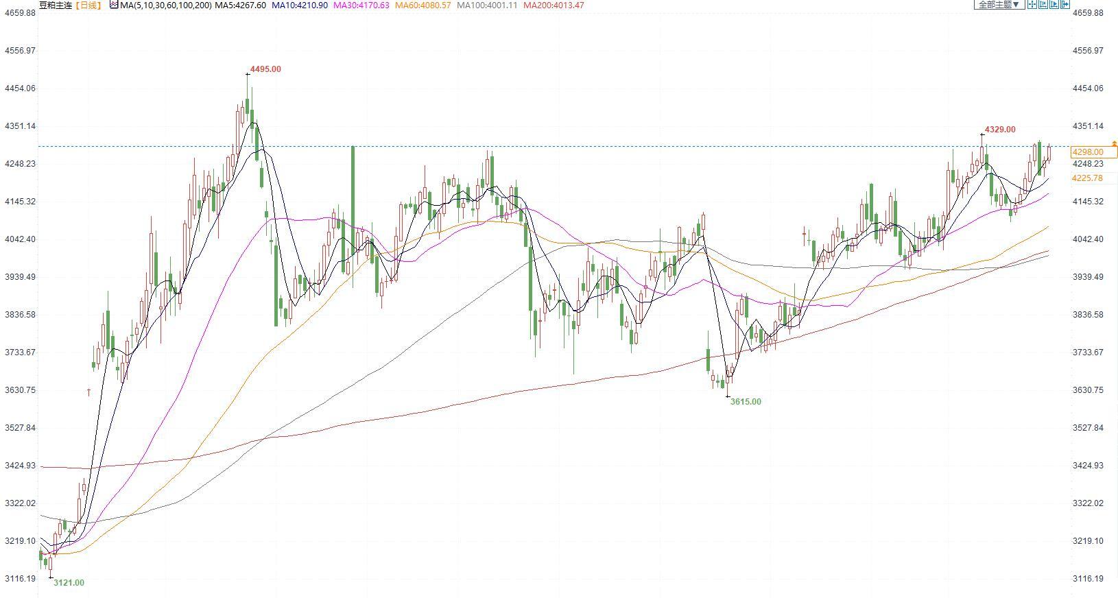 总结:棕榈油供应端有支撑,短期处于宽幅震荡中的上涨趋势中。