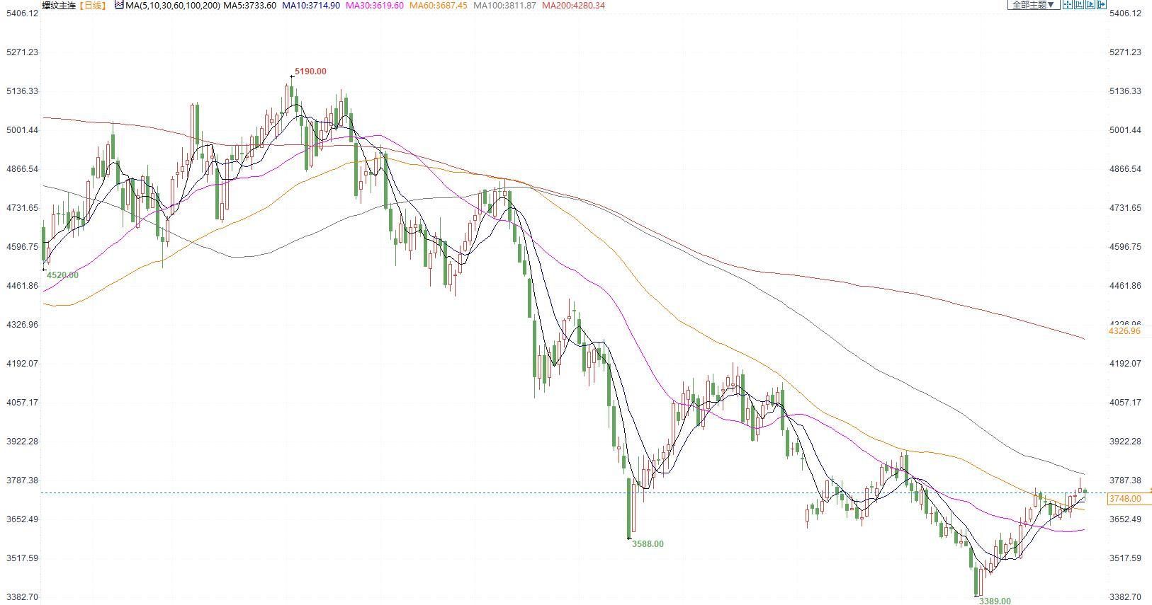 价格:螺纹钢2301合约今日整体窄幅震荡,午后价格出现下滑,收盘价3748元/吨,小幅收跌0.74%。上海中天现货价3740元/吨,环比下降40元/吨。