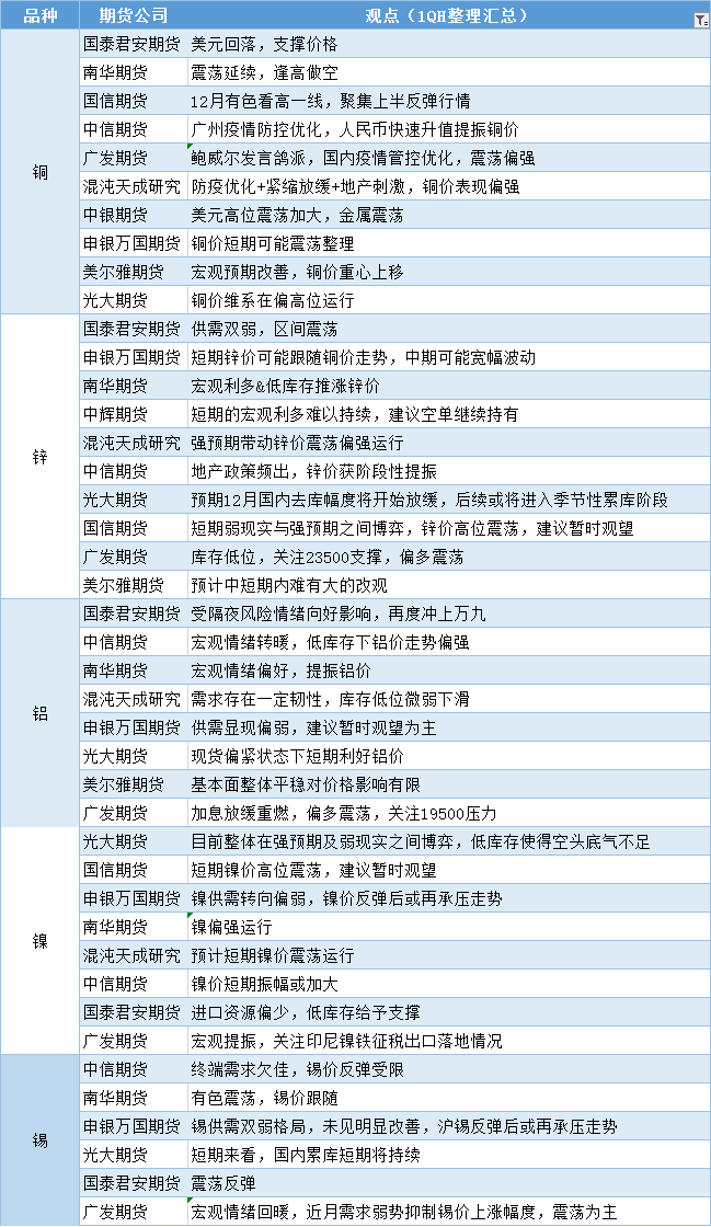 标题:期货公司观点汇总一张图:12月1日有色系(铜、锌、铝、镍、锡等)