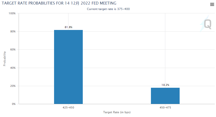 隔夜,鲍威尔在华盛顿布鲁金斯学会表示,实际上证实了美联储将在12月份放慢加息步伐。市场现在预计,美联储在即将召开的12月会议上下调加息幅度至50个基点的可能性超过80%。决策层还将对未来几年的利率、经济增长、通胀和失业率做出新的预测。