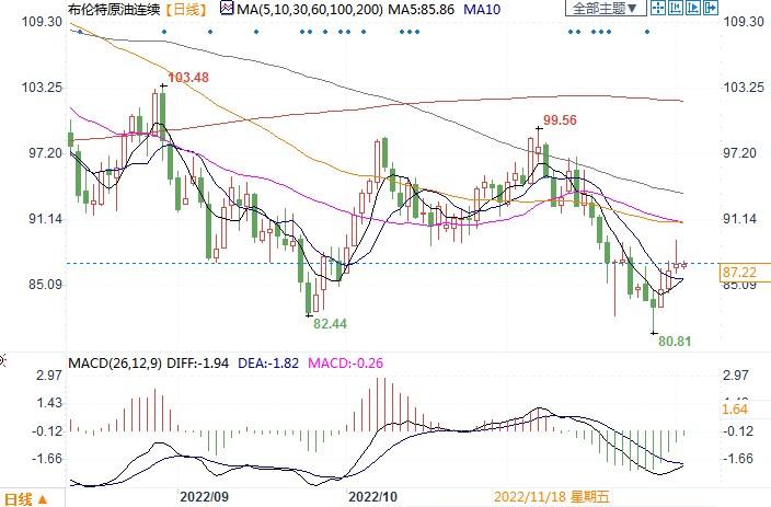 北京时间12月2日11:32,布伦特原油连续报87.13美元/桶