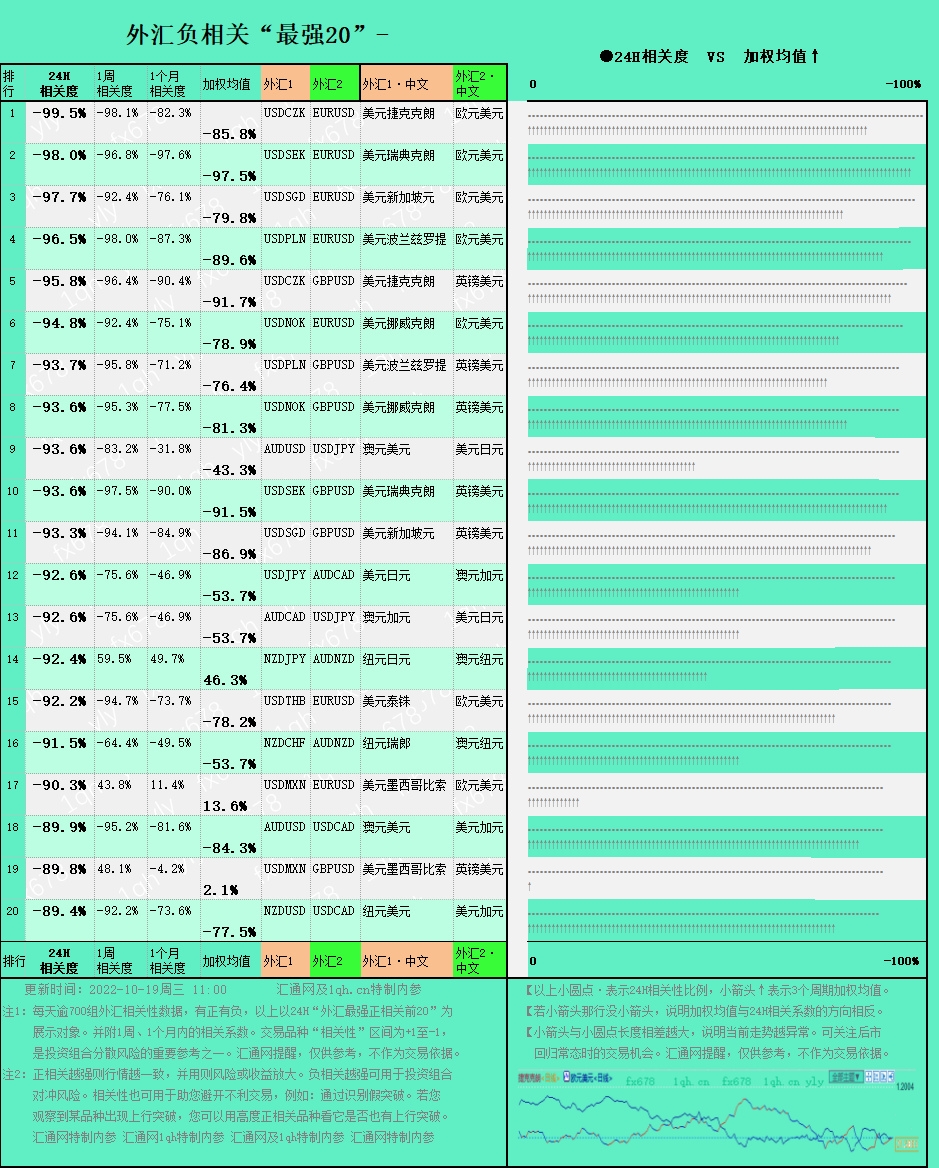 ★过去24小时交易时间内,外汇负相关最强三个分别是:美元捷克克朗(USDCZK)?VS?欧元美元(EURUSD)的外汇负相关强度达到-99.50%。美元瑞典克朗(USDSEK)?VS?欧元美元(EURUSD)的外汇负相关强度达到-98.00%。美元新加坡元(USDSGD)?VS?欧元美元(EURUSD)的外汇负相关强度达到-97.70%?;阃ㄍ嵝眩嗖慰急疚娜缦卤砀?。