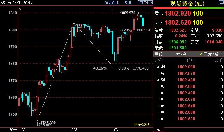 现货黄金上看1823美元
