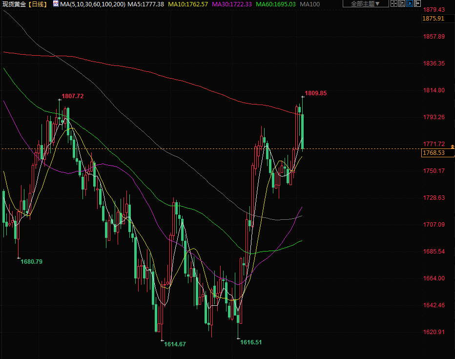 黄金周一自近5个月高位回落,回落近2%,美国11月ISM非制造业PMI上升至56.5,美联储在收紧加息周期的道路上依然任重道远,市场仍相信美联储不会在2023年降息。