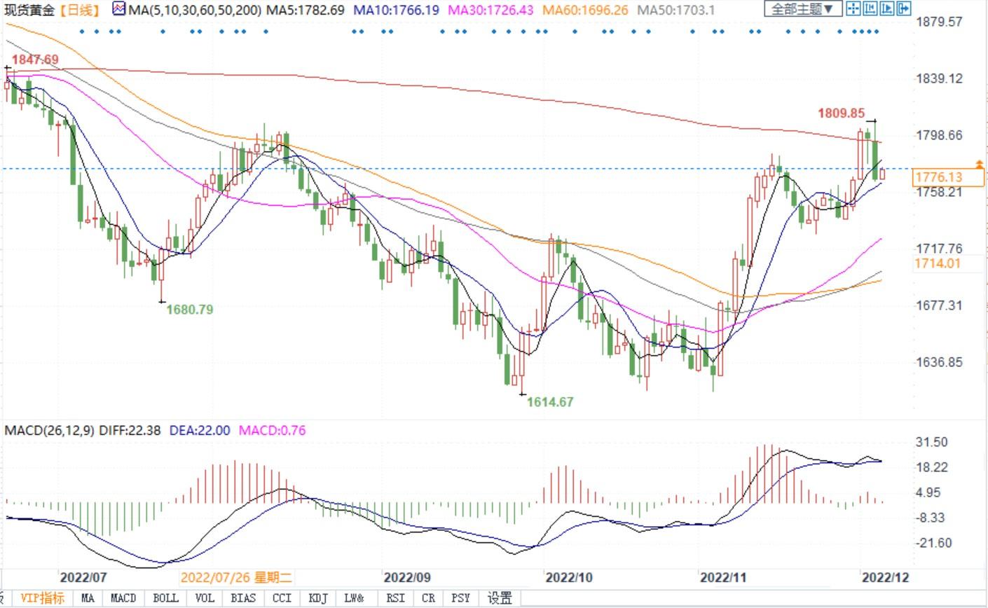 道明证券大宗商品分析师上周五在一份报告中表示:“现在美联储主席鲍威尔令人信服地暗示,他准备从12月开始降低政策加息的步伐,鉴于市场普遍猜测,全球已经经历了美国加息最糟糕的时期,通胀将很快得到控制,而不是更晚,黄金价格已进入上行轨道,逼近每盎司1800美元。这应该会在未来一周看到多头仓位继续增加。然而,由于美国的通货膨胀仍然是一个大问题,以及工资和就业数据持续强劲,如果美联储在12月14日的立场不像目前预期的那么温和,那么市场可能会再次出现削减多头头寸的情况?!?br>