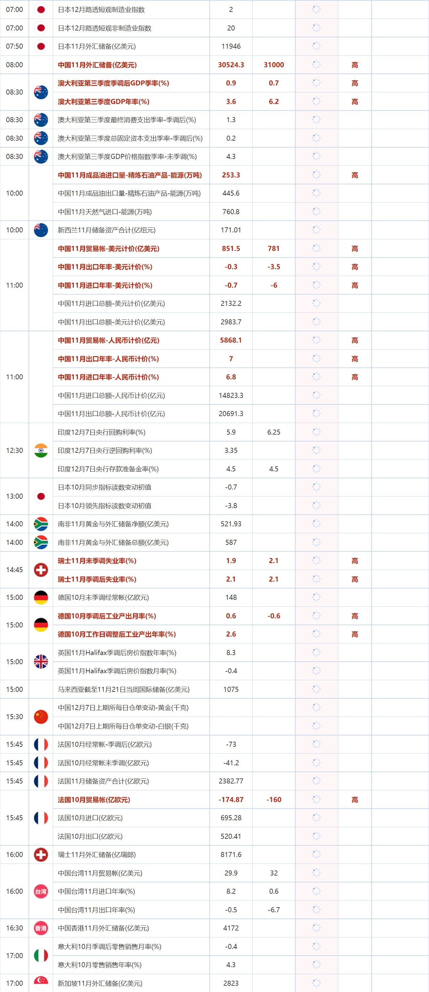 08:00?中国11月外汇储备(亿美元)?,?前值?30524.3?,?预期值?31000?,?公布值:待发布