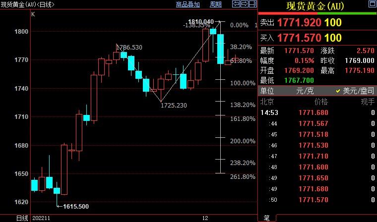 北京时间20:20,现货黄金上浮0.02%至1771.18美元/盎司;COMEX期金主力合约上浮0.04%至1783.2美元/盎司;美元指数下跌0.13%至105.431。