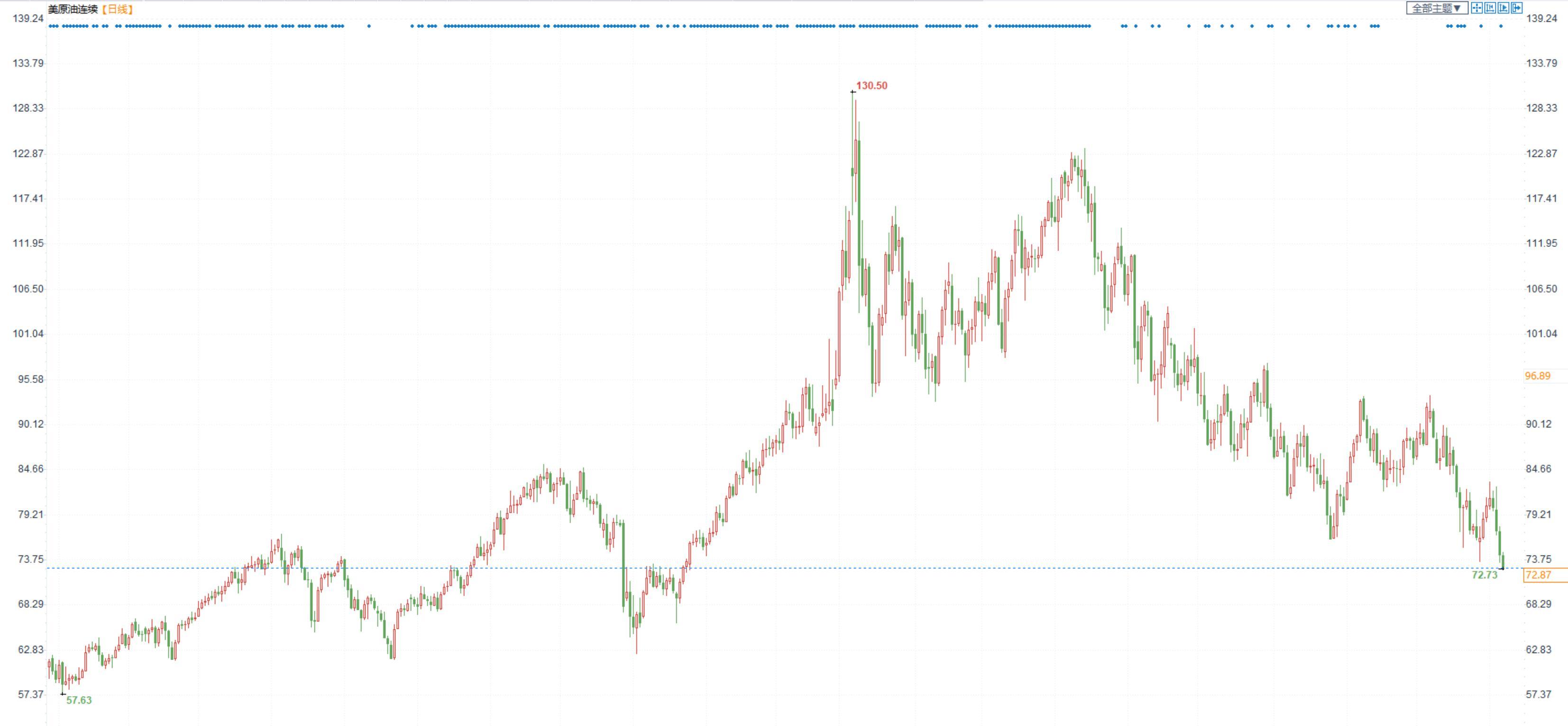 期货市场,布油在79美元附近震荡整理,下破80美元整数关口,国内SC2301合约跌超5%,收盘价515.0。