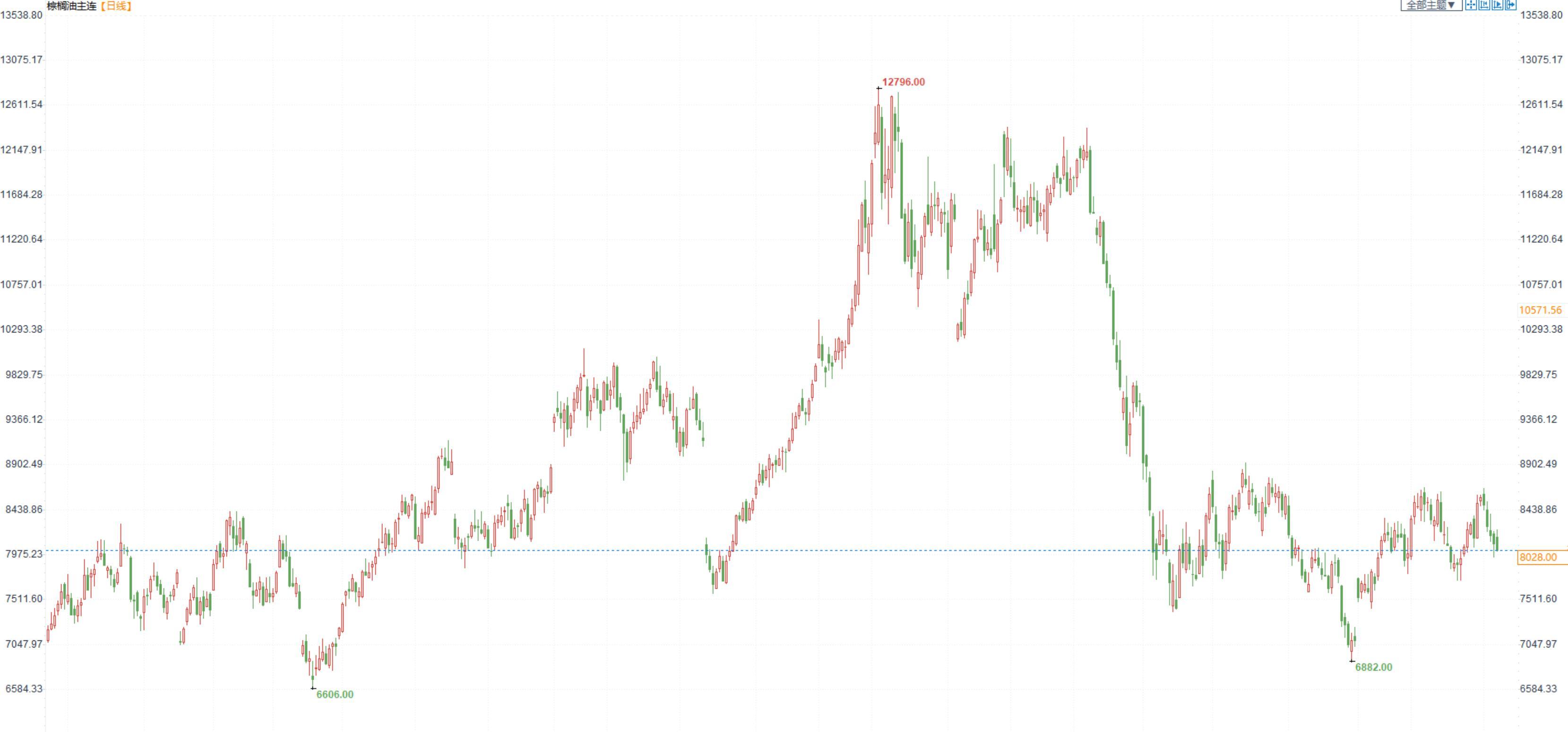 棕榈油2301合约日内跌0.69%,收盘8028元/吨;广州市场棕榈油8200元/吨。