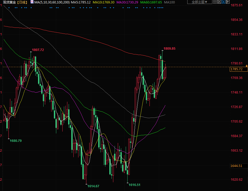 道明证券大宗商品市场策略主管Bart?Melek表示,“我们看到国债收益率全线下跌,美元小幅走软,我们只是从低位反弹。”