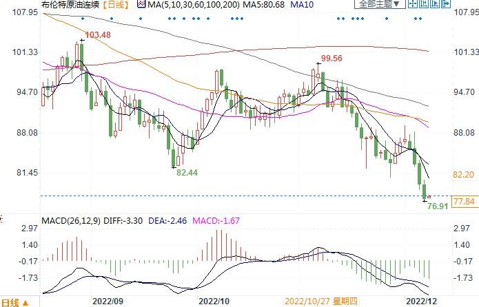 北京时间12月8日14:17,布伦特原油连续报77.56美元/桶