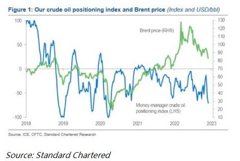 专家们表示,油价受到自上而下的宏观交易回流的影响,经济层面的正面和负面消息都引发了抛售。根据渣打银行的数据,由于担心衰退,负面的美国经济数据点正在引发油价抛售。然而,讽刺的是,由于美元走强,积极的数据点也产生了类似的影响。?
