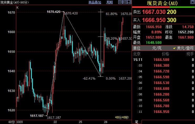 周三(10月26日),现货黄金升创10月13日以来新高至1674.77美元/盎司,因美国经济数据不佳加剧了对美联储将放慢加息速度的猜测,美元指数刷新9月20日以来低点至109.932。北京时间19:2...