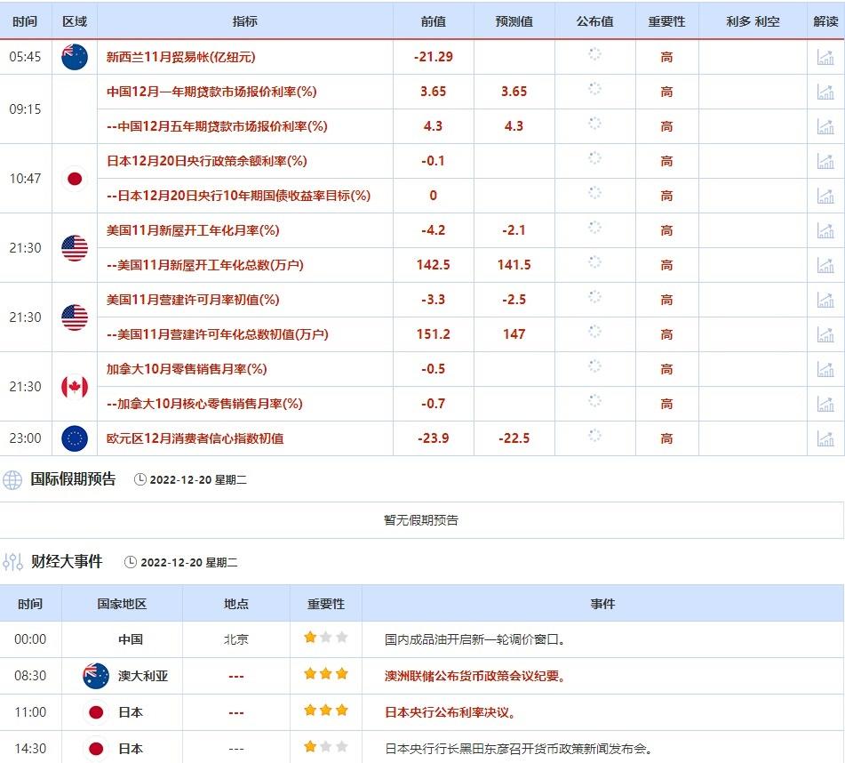 ②12月20日(周二)关键字:日本央行利率决议,欧元区12月消费者信心指数,澳洲联储12月会议纪要?