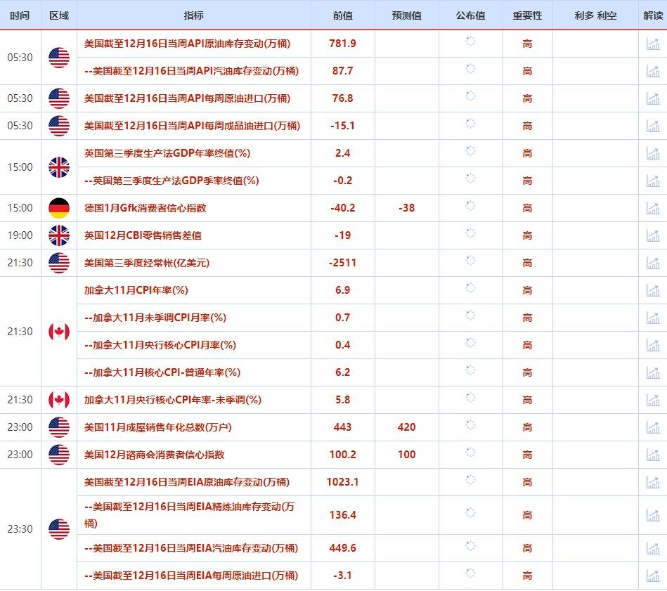 ③12月21日(周三)关键字:美国截至12月16日当周API原油和EIA库存变动,加拿大11月CPI?
