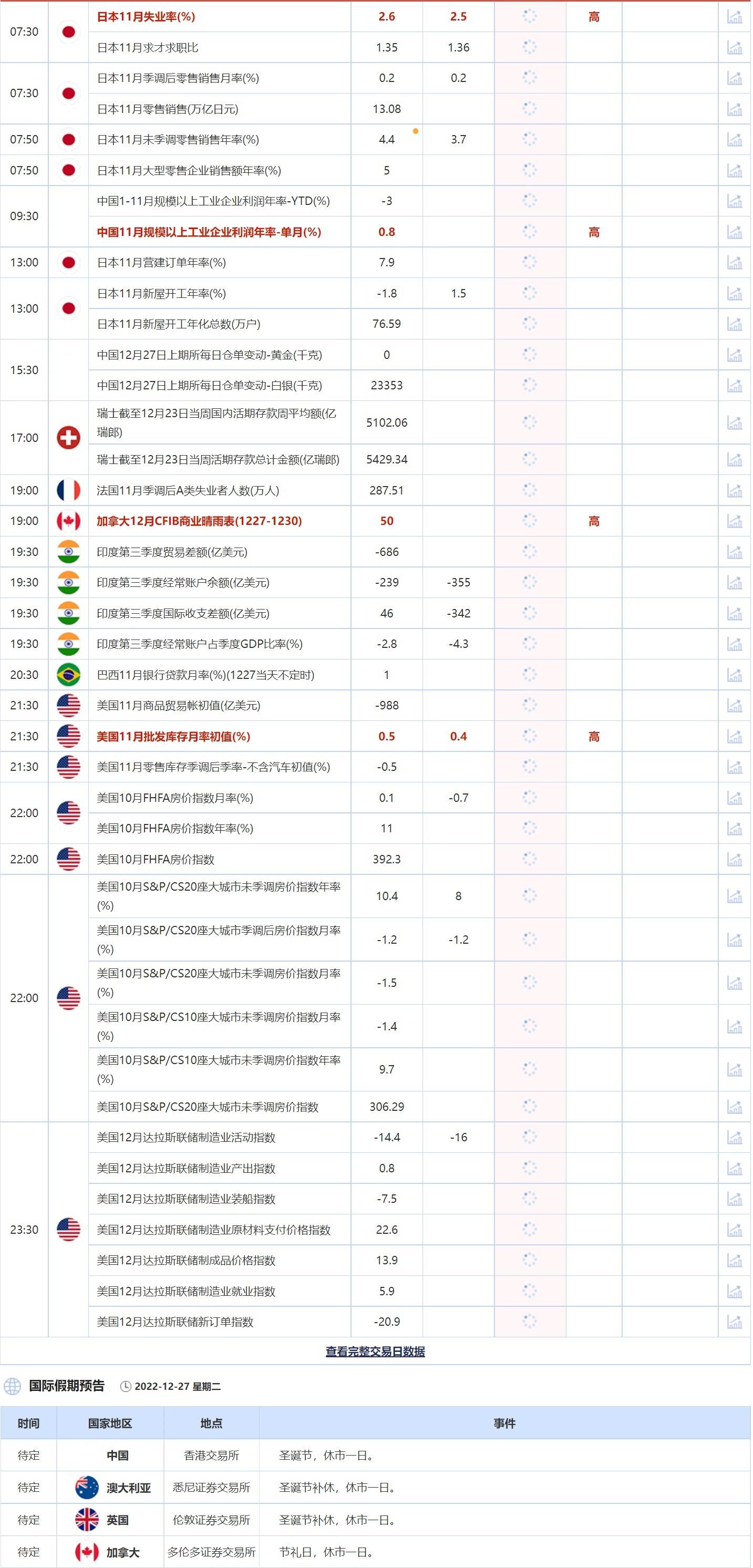 后续及时更新的财历数据请关注:【汇通网12月27日财经日历】