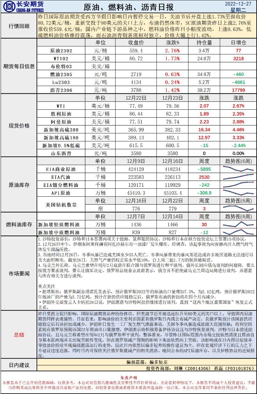 标题:长安期货原油早评:原油将偏强震荡,建议偏多短差