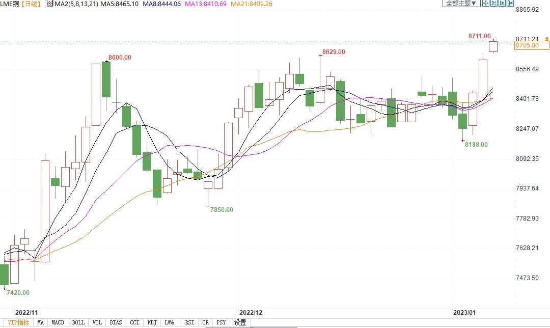 目前,铜价仍处于横盘区间内。由于该行业面临一系列问题,2022年是铜价动荡的一年。欧洲的供应短缺、铜生产大国秘鲁和智利政治动荡、亚洲疫情,美国高通胀也是导致铜价波动的原因。?