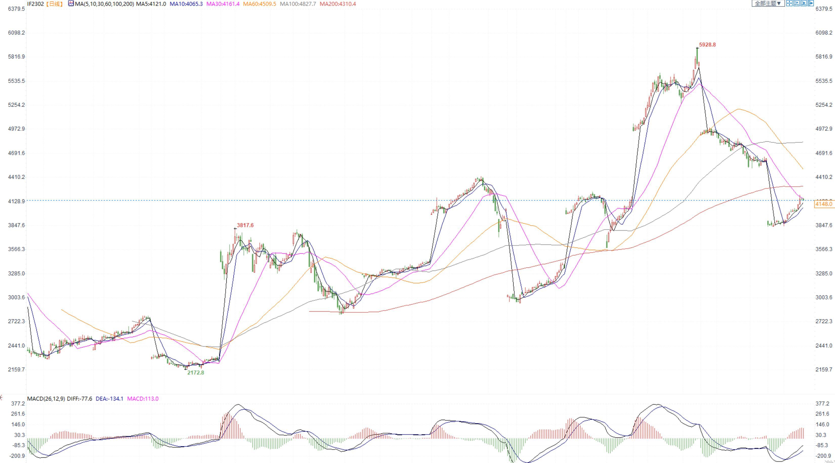 【今日涨跌】四大期指涨跌互现。IH2301收盘价为2809.8,收跌0.73%;IF2301收盘价为4133.4,收跌0.26%;IC2301收盘价为6153.4,收涨0.13%;IM2301收盘价为6621.2,收涨0.17%。