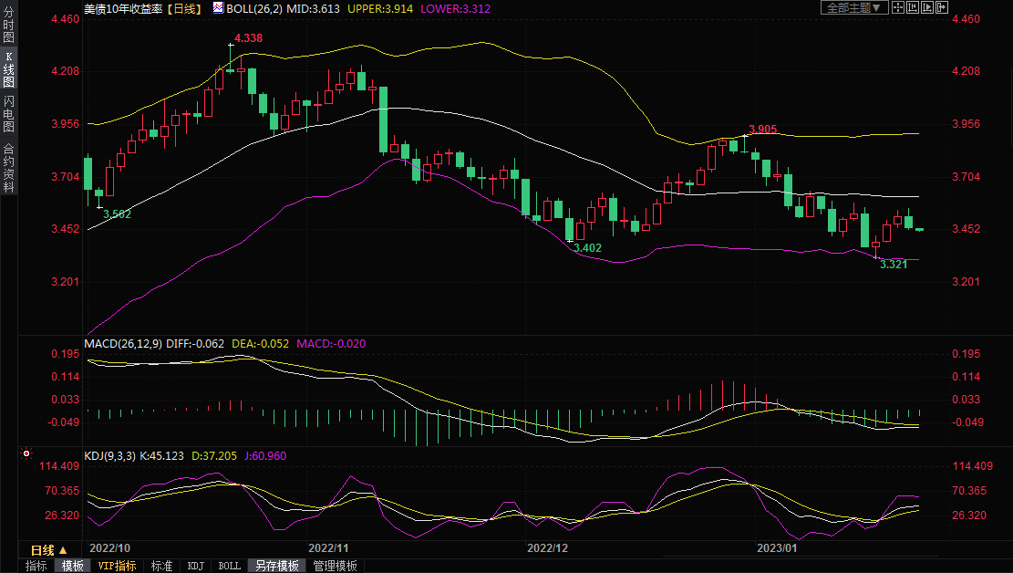 美国10年期国债收益率周二下降约6个基点至3.465%,而美国30年期国债收益率下降7个基点至3.619%。周四亚市盘初,美债收益率延续跌势,一度创三个交易日低点至3.445%。