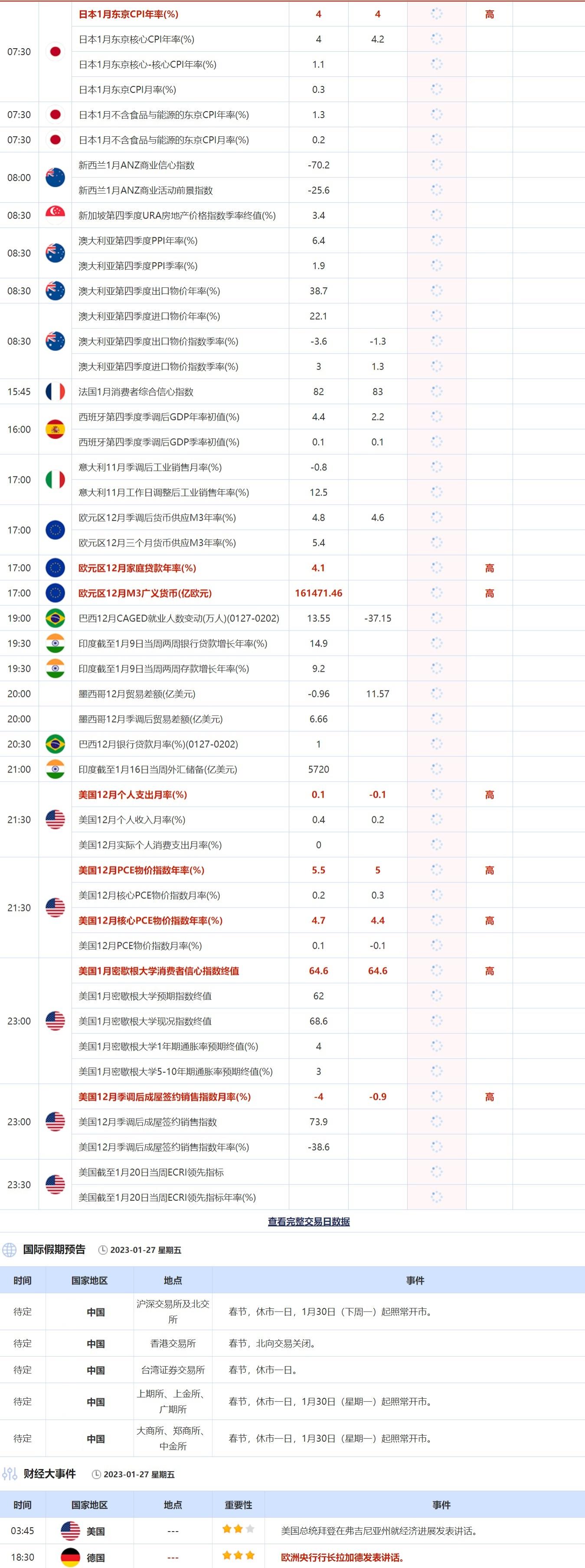 1月27日重点数据和大事件前瞻