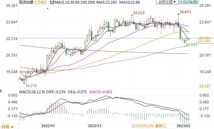 北京时间2月9日13:18,现货白银报22.4美元/盎司