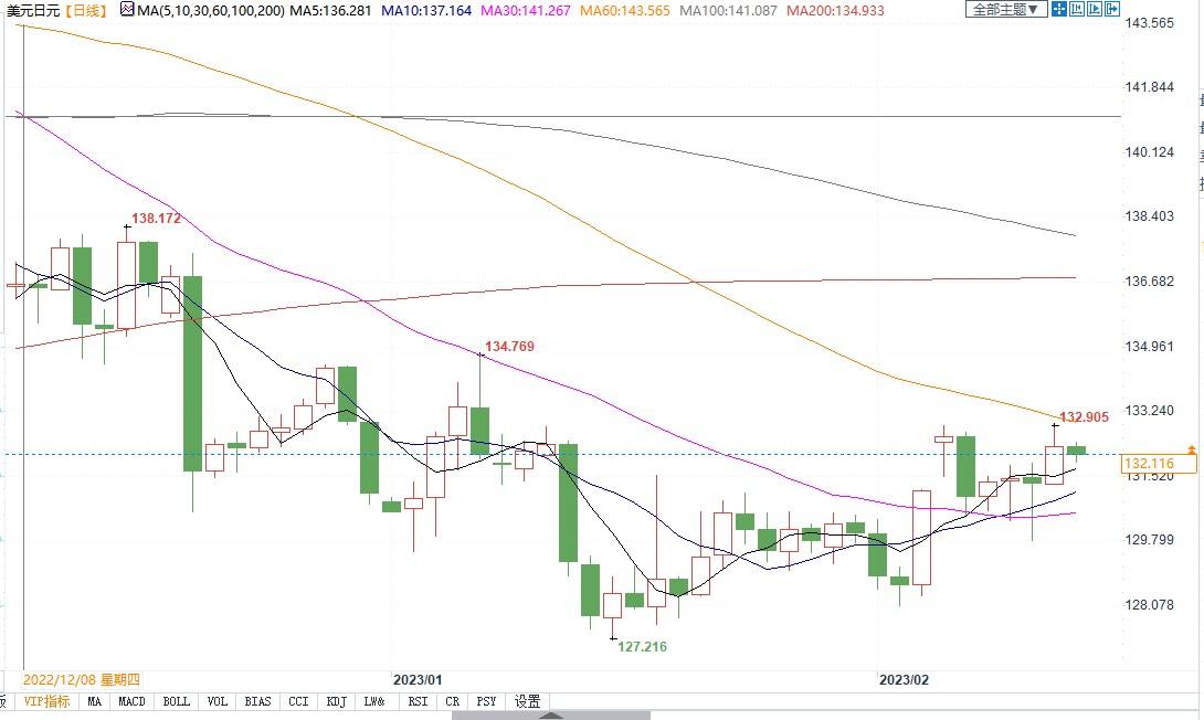 北京时间2月14日10:55,美元兑日元报132.111/119