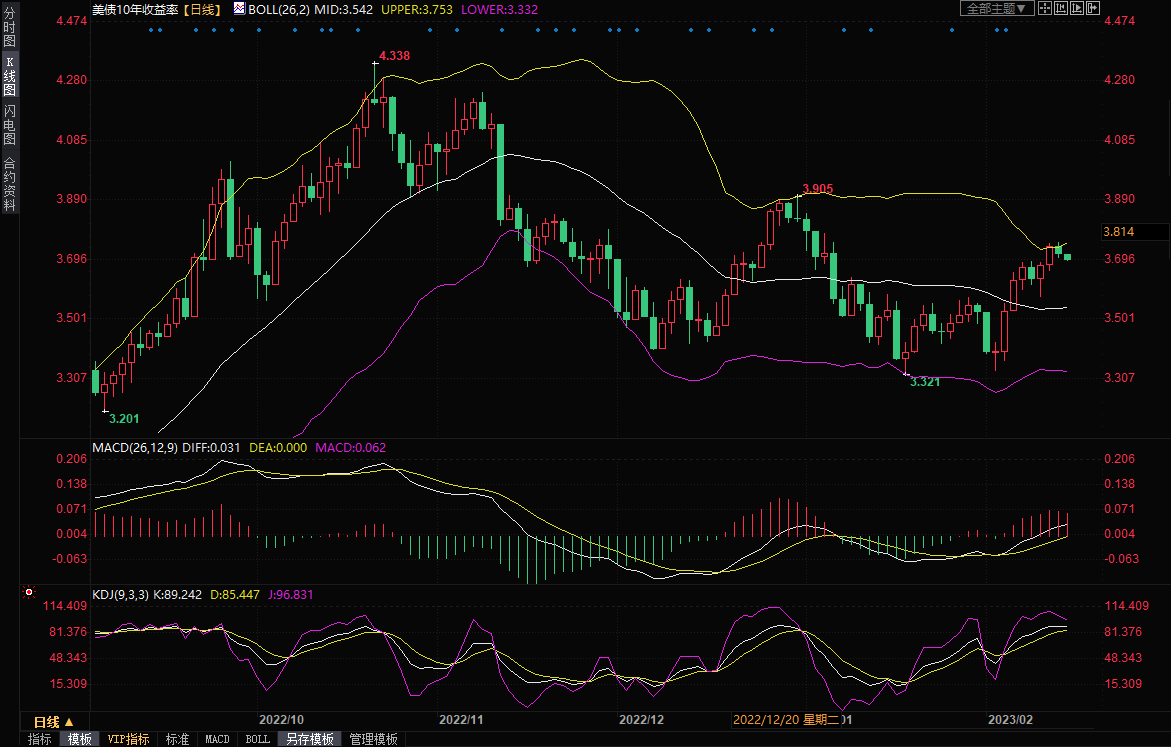自本月初强于预期的就业数据公布以来,收益率稳步上升。美国在1月新增51.7万个工作岗位,而失业率触及3.4%的53年来的最低水平。