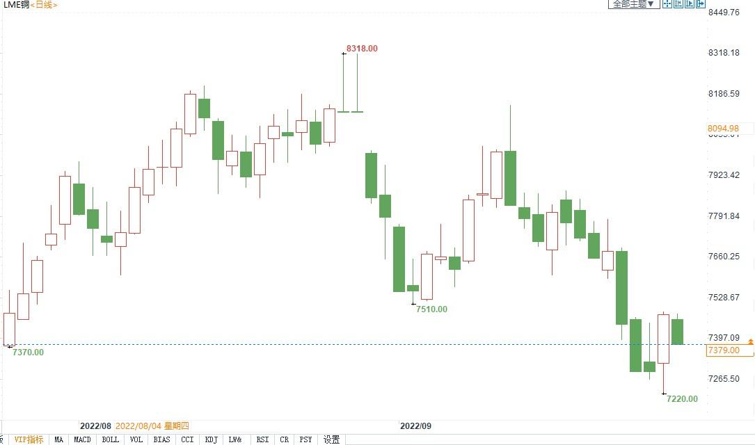 北京时间9月29日14:00,LEM铜价格报7381.5美元/吨。