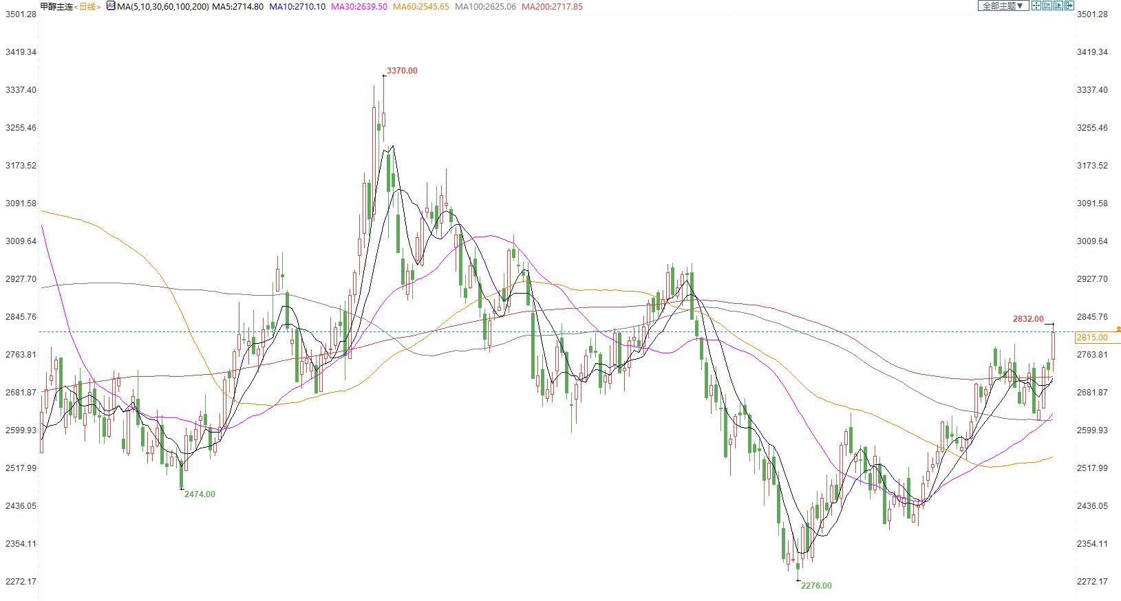 期货市场,甲醇2301合约涨幅近3%,收盘价2815。江苏现货报价2870-2880,节前刚需补货,港口货源偏紧。