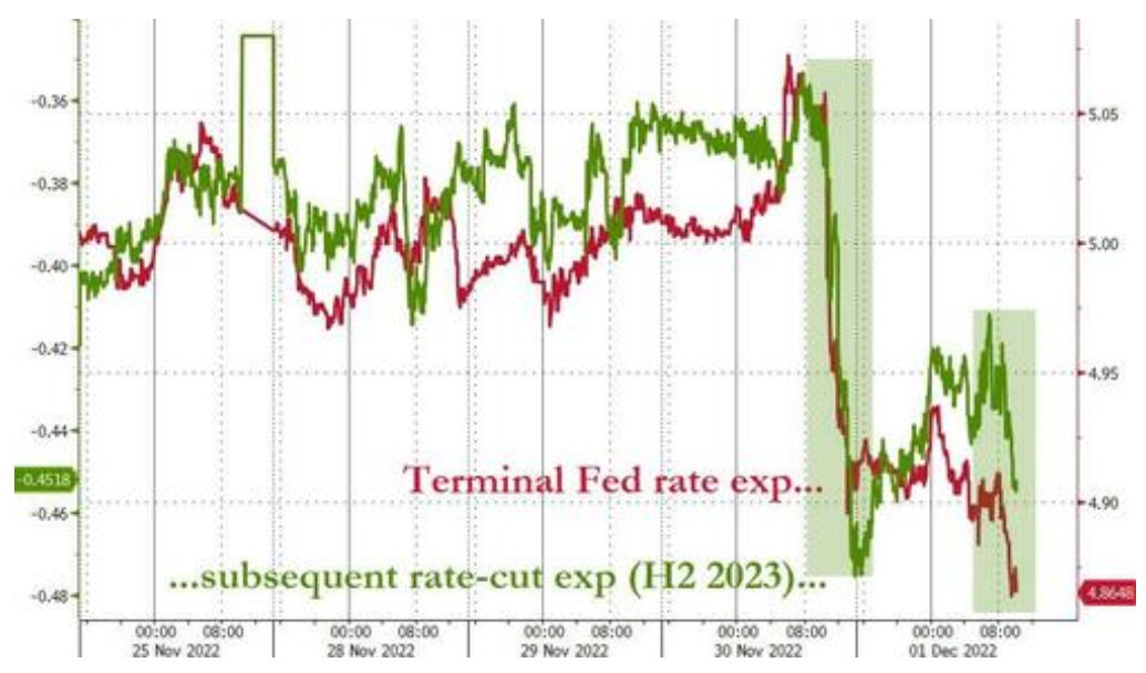 根据利率期货市场的定价显示,交易员现在预计美联储将在明年把主要利率提高到约4.9%的峰值,而本周初的预测是5%,11月初的高点是5.14%。?