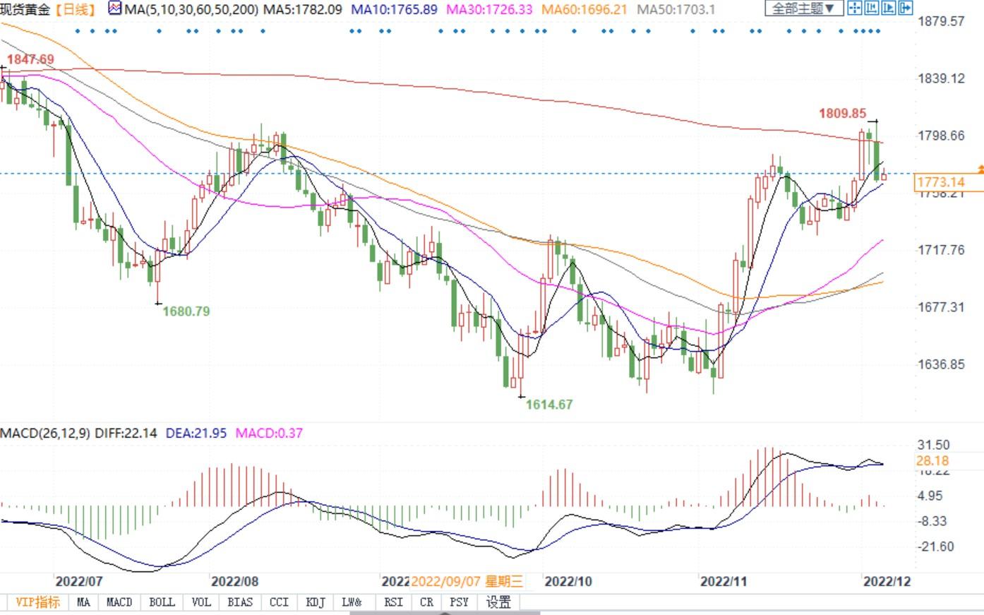 北京时间12月6日18:12,现货黄金报1773.08美元/盎司