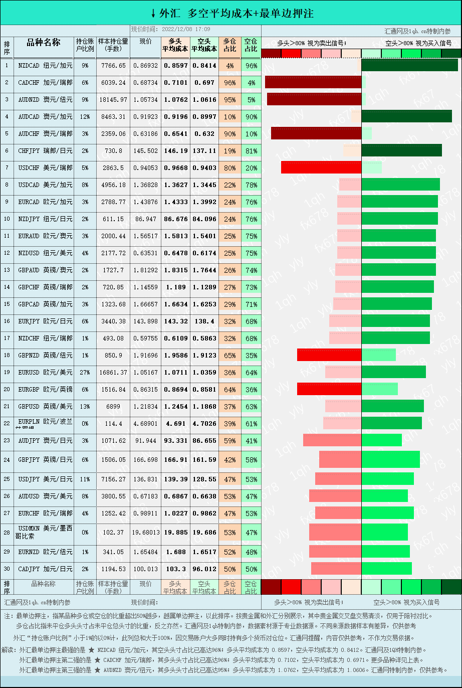 标题:图解贵金属及外汇:多空成本+最单边押注(2022/12/08周四)